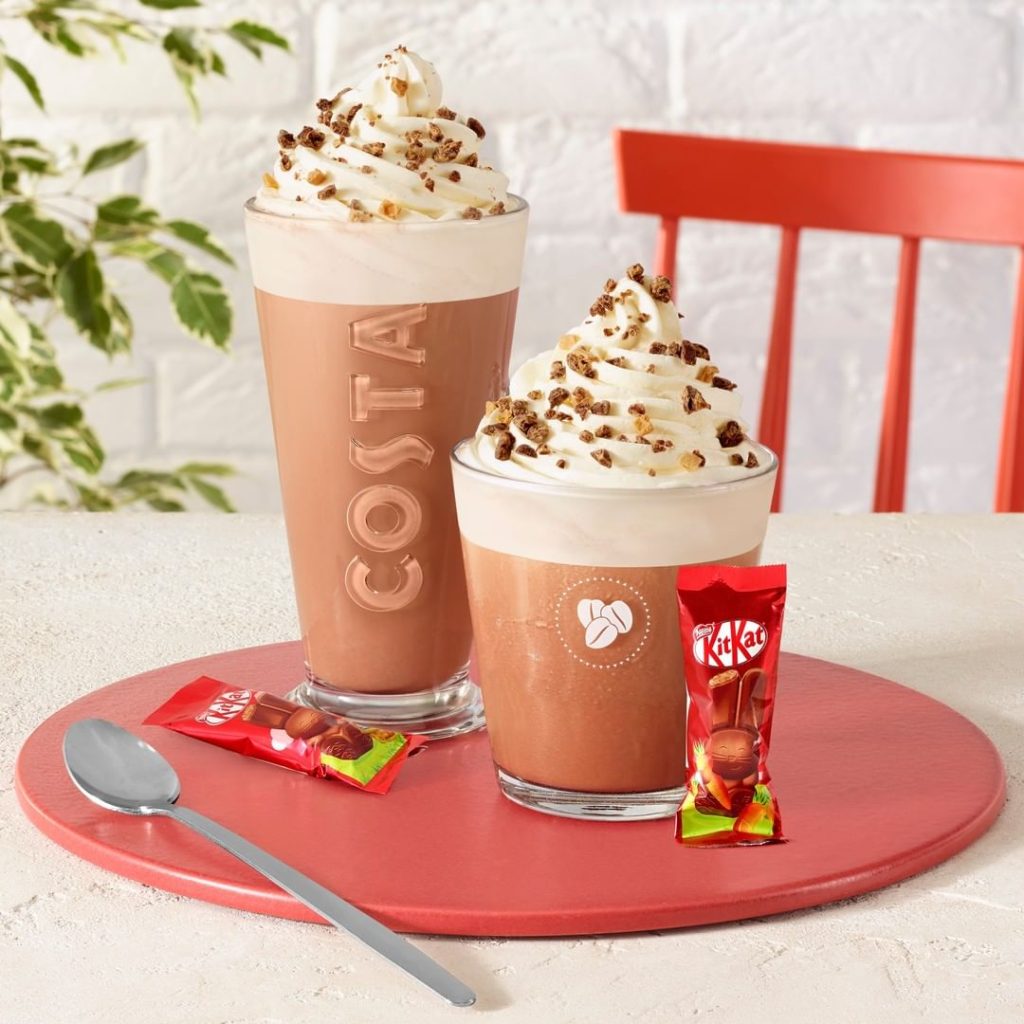 Right now at Costa you can enjoy a delicious hot cross bun range of drinks and Easter sweet treats. Make sure you try the brand new limited-edition KitKat® hot chocolate and KitKat® iced chocolate, too. Grab one while you’re out and about!