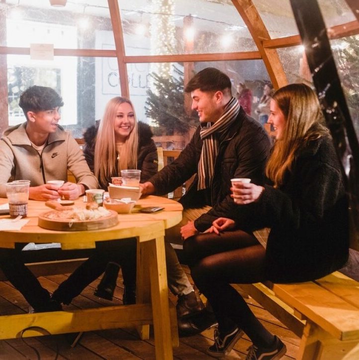 It doesn’t get much more exciting than a Christmas celebration at Lloyd’s Lounge. Enjoy a sumptuous two-course Christmas lunch or a sharing board loaded with your pick of festive tapas. Plus, back for another year are the wonderful winter chalets, which are bookable for groups of four to six guests, offering a unique private drinking and dining experience in the heart of Exeter. Each chalet comes with faux fur blankets, twinkling lights, and is set up ready for you to play your own music!
