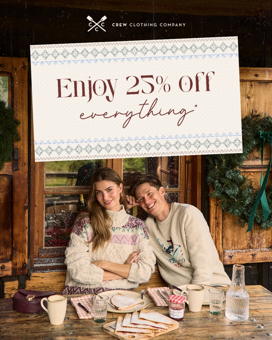 25% off EVERYTHING is now on at Crew Clothing Princesshay and online.