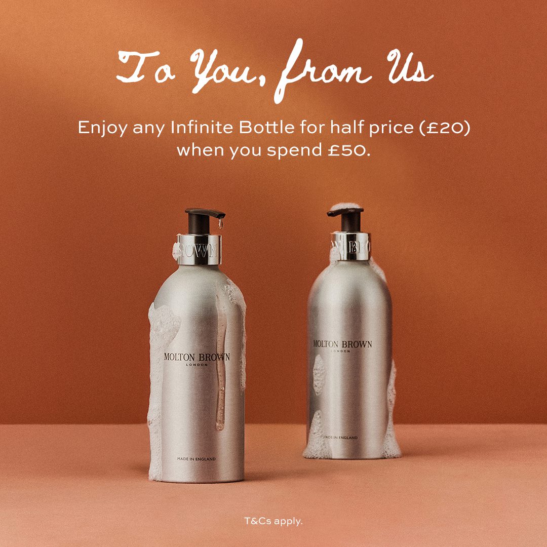 Spend £50 at Molton Brown and receive any Infinite Bottle for half price £20 (worth £40)