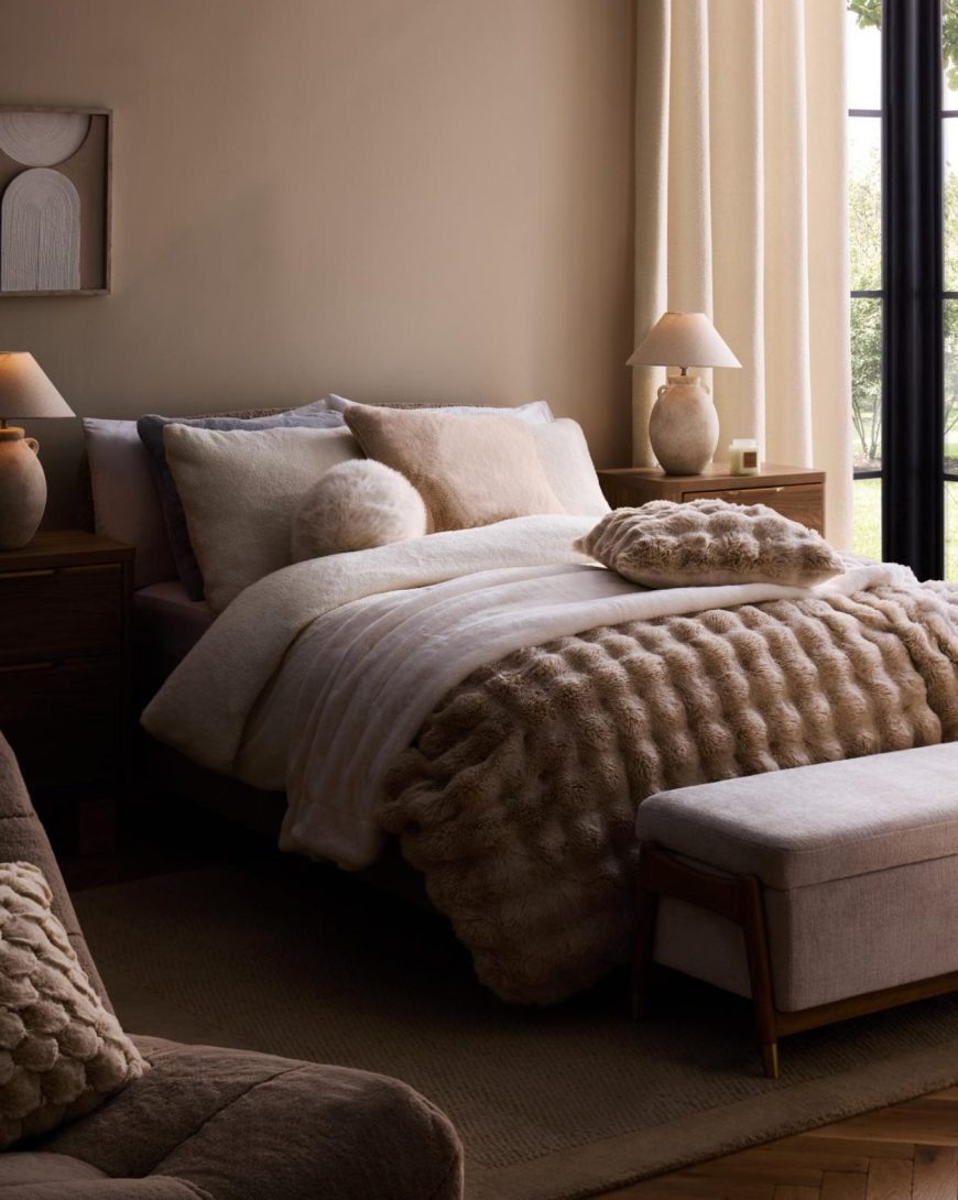 Refresh your space with stylish nesting décor; think scented candles, soft throws and textiles and homeware that reflects your personality. Find quirky items such as glitter lamps, fondue sets and storage crates now at Flying Tiger Copenhagen. And head to Next where their Home Collection’s giving hygge vibes for snug bedrooms.