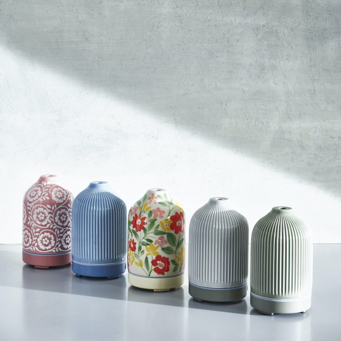 Enter our competition to win a beautiful sage green ceramic essential oil aroma diffuser, designed to mist and infuse the room with calming fragrances. We’re also including two fragranced oils – add a few drops of these to your diffuser to fill your room with a citrusy blend of orange blossom or the vanilla-like scent of benzoin. Good luck!
