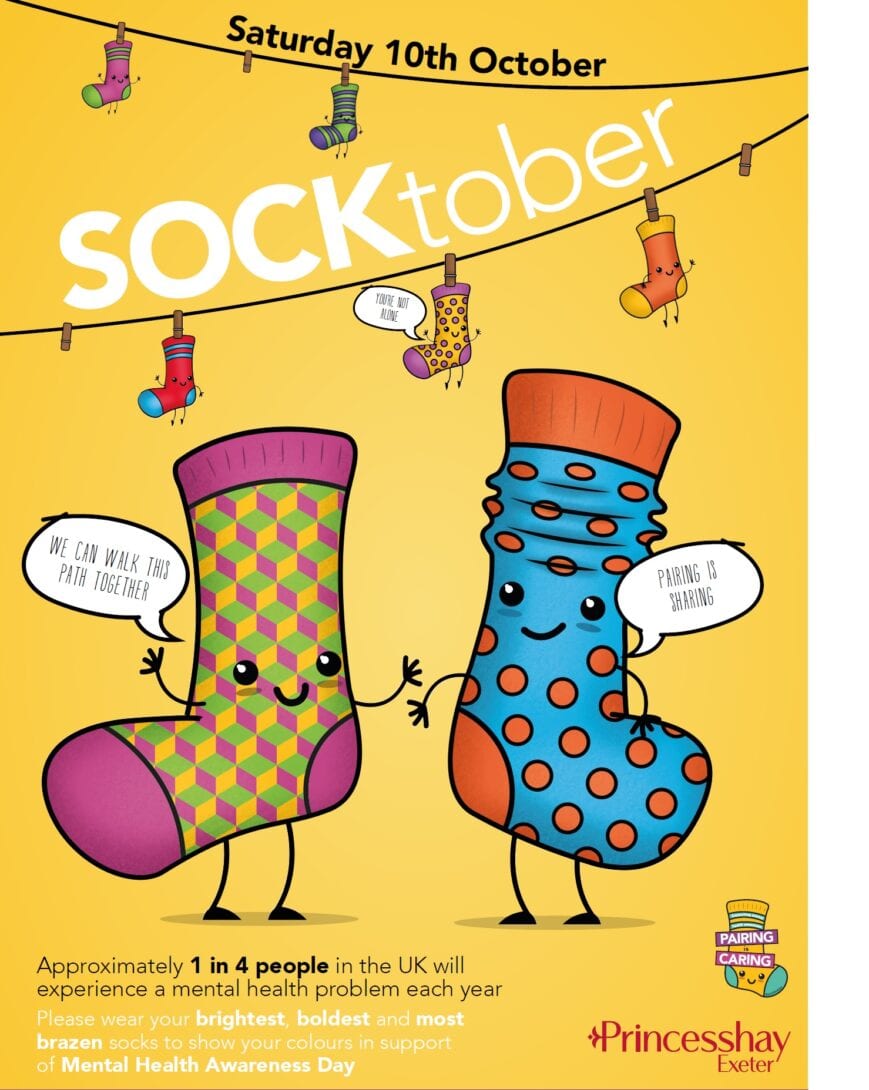 The challenge is to wear your funkiest, brightest socks on Saturday 10th October to show that you don’t always know what’s going on underneath. Something as simple as a conversation about your bright socks can led to someone feeling less isolated and better about themselves – simple huh? The main objective is to raise awareness and encourage people to open up about their wellbeing.